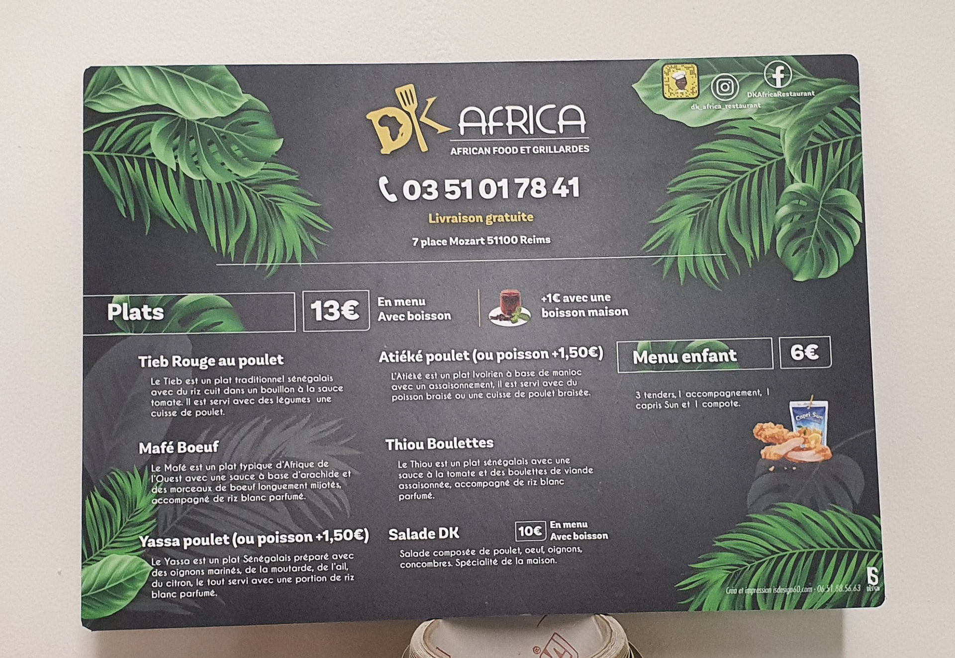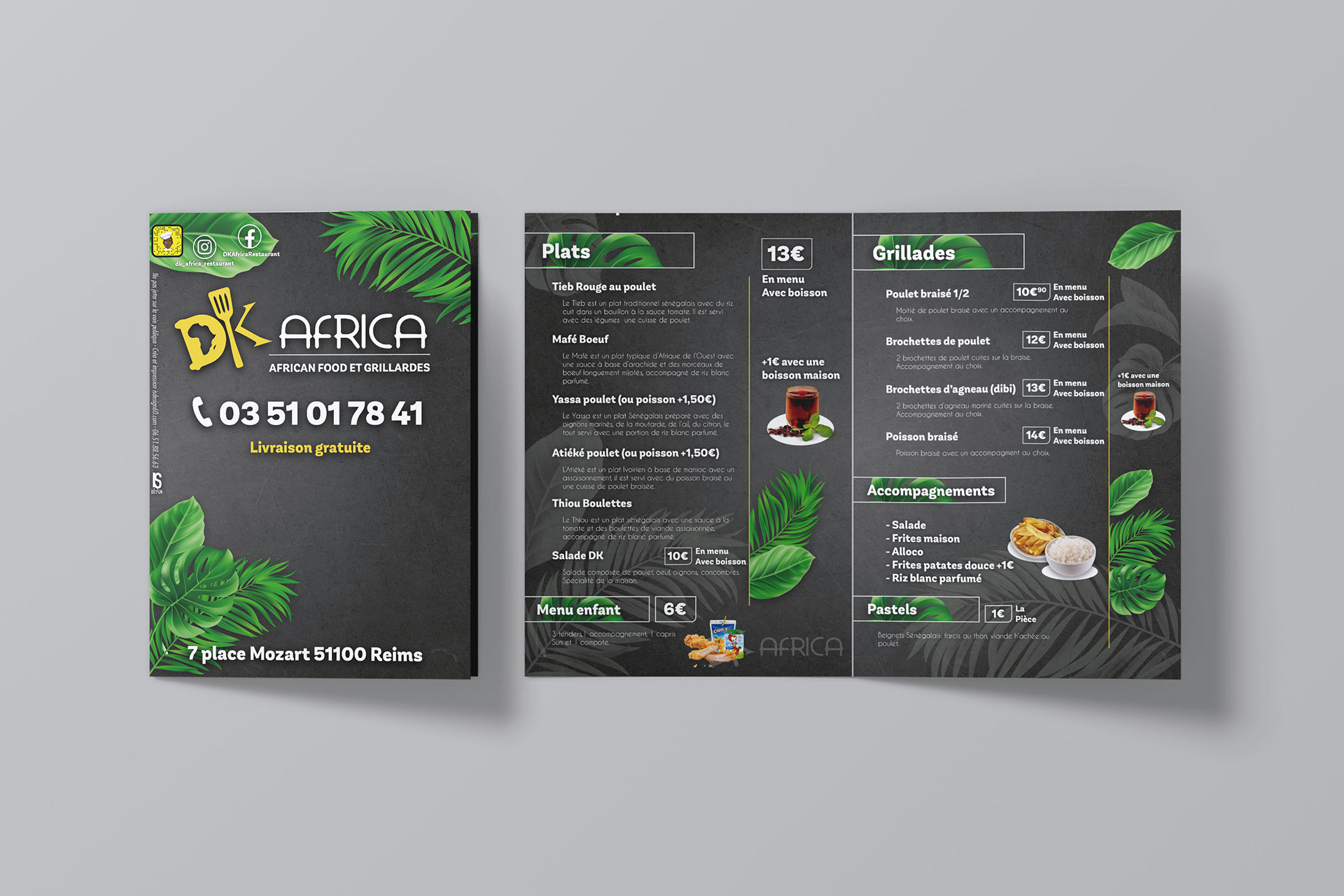 Flyer et plaque de menu pour "DK Afica"