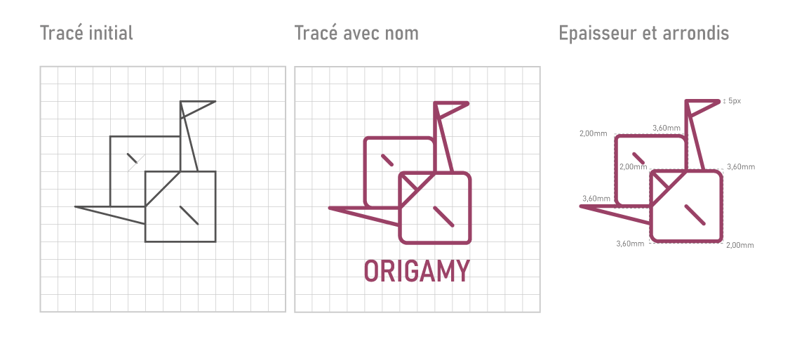 Origamy est une entreprise fictive de vêtement. J'ai imaginé le logo avec une grue japonaise en origami avec le slogan "origami se plient à vos envies".